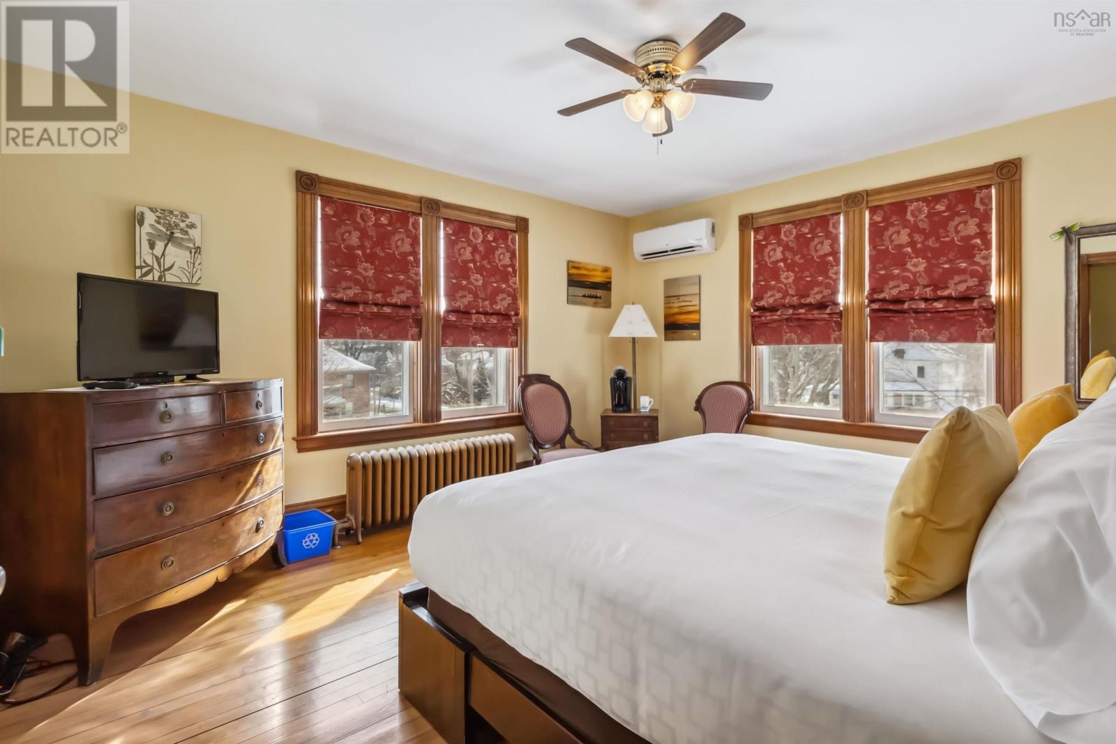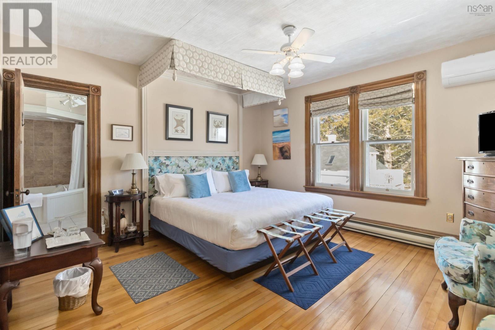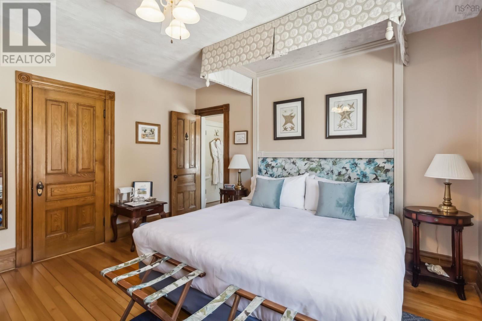 Discover Alicion Bed & Breakfast, one of Nova Scotias finest. It is a fully furnished and equipped turn-key business in a prime location. This stunning century home has been meticulously preserved, showcasing its original woodwork, elegant stained glass, and timeless charm. With four beautifully appointed guest rooms, each with its own ensuite, guests are treated to comfort and luxury. The private owners suite, located on the third floor, offers a serene retreat. The property also includes a charming two bedroom, 1 and a half bathroom carriage house, perfect for additional income or extended stays. Modern conveniences blend seamlessly with historic charm, with five heat pumps installed throughout and air conditioning in the owners suite. Recent updates include new appliances in both the main house and the cottage. Situated in a quiet yet desirable location, guests can easily walk to the waterfront, local restaurants, and attractions of the UNESCO designated town of Lunenburg. This exceptional offering includes not only the property but also the intellectual propertyproviding a seamless transition for the next owner. Whether youre looking for a lifestyle change or a thriving hospitality investment, Alicion Bed & Breakfast is a rare and extraordinary opportunity. Dont miss your chance to own a piece of Nova Scotias hospitality heritage! (id:4069)