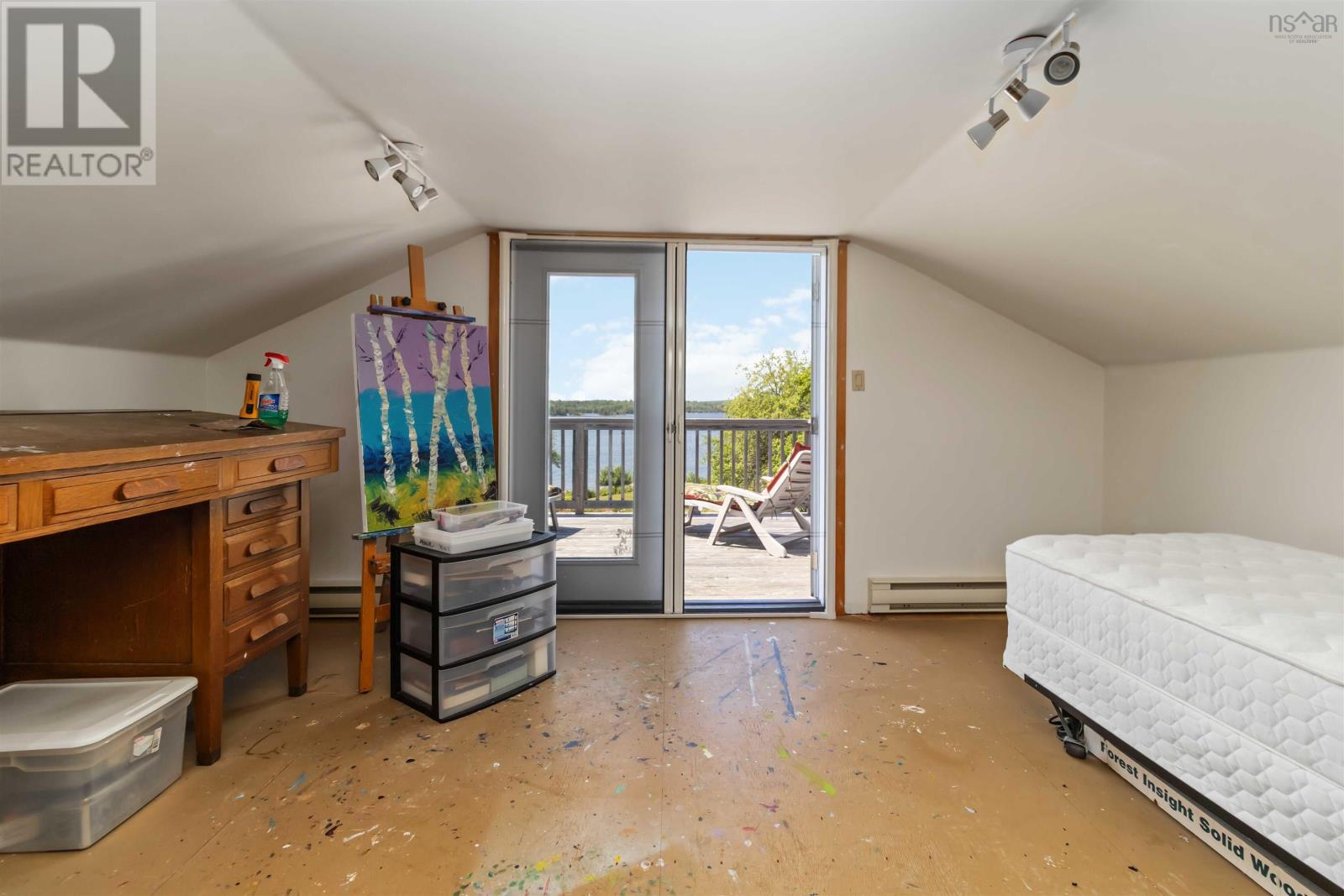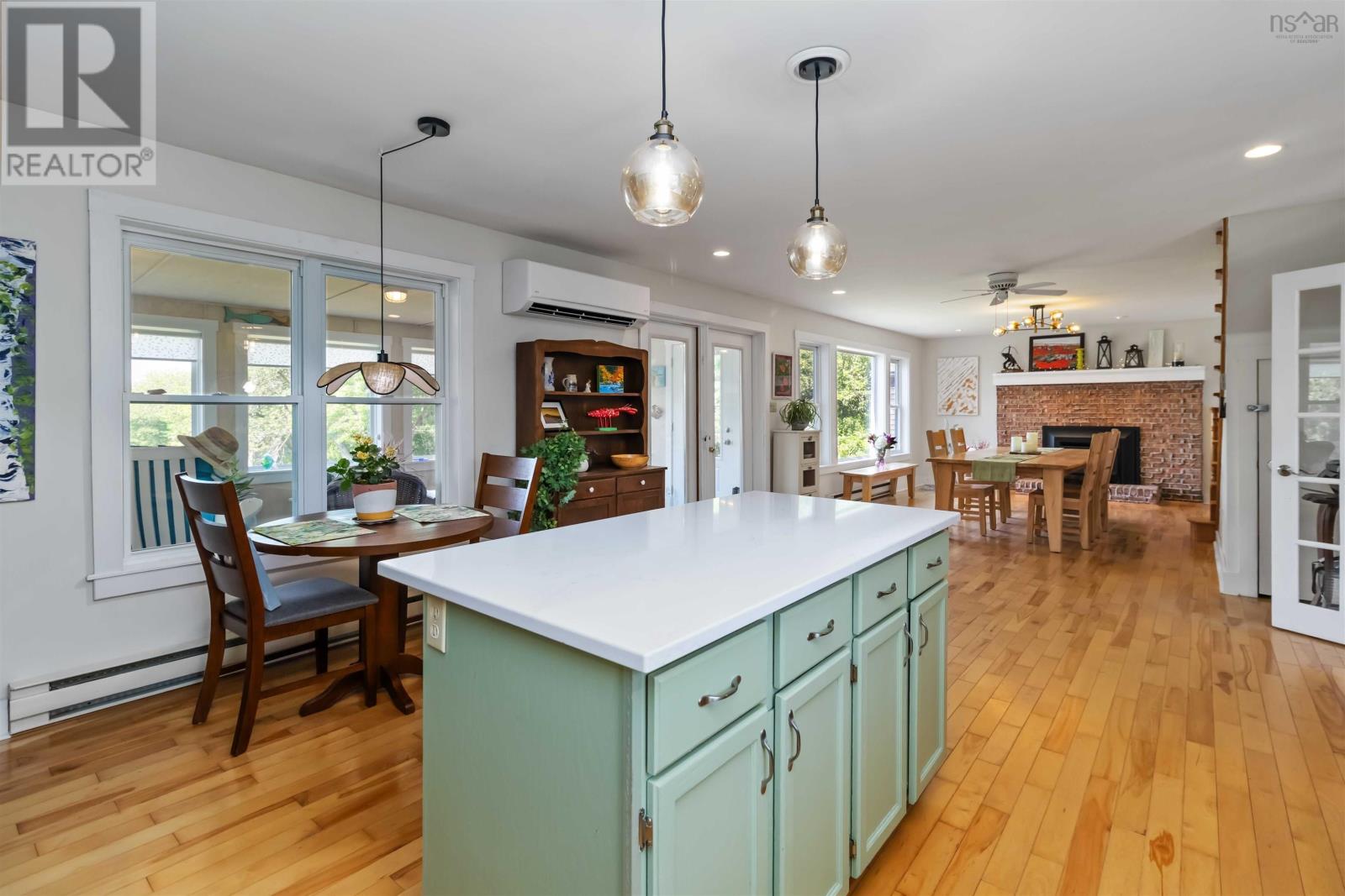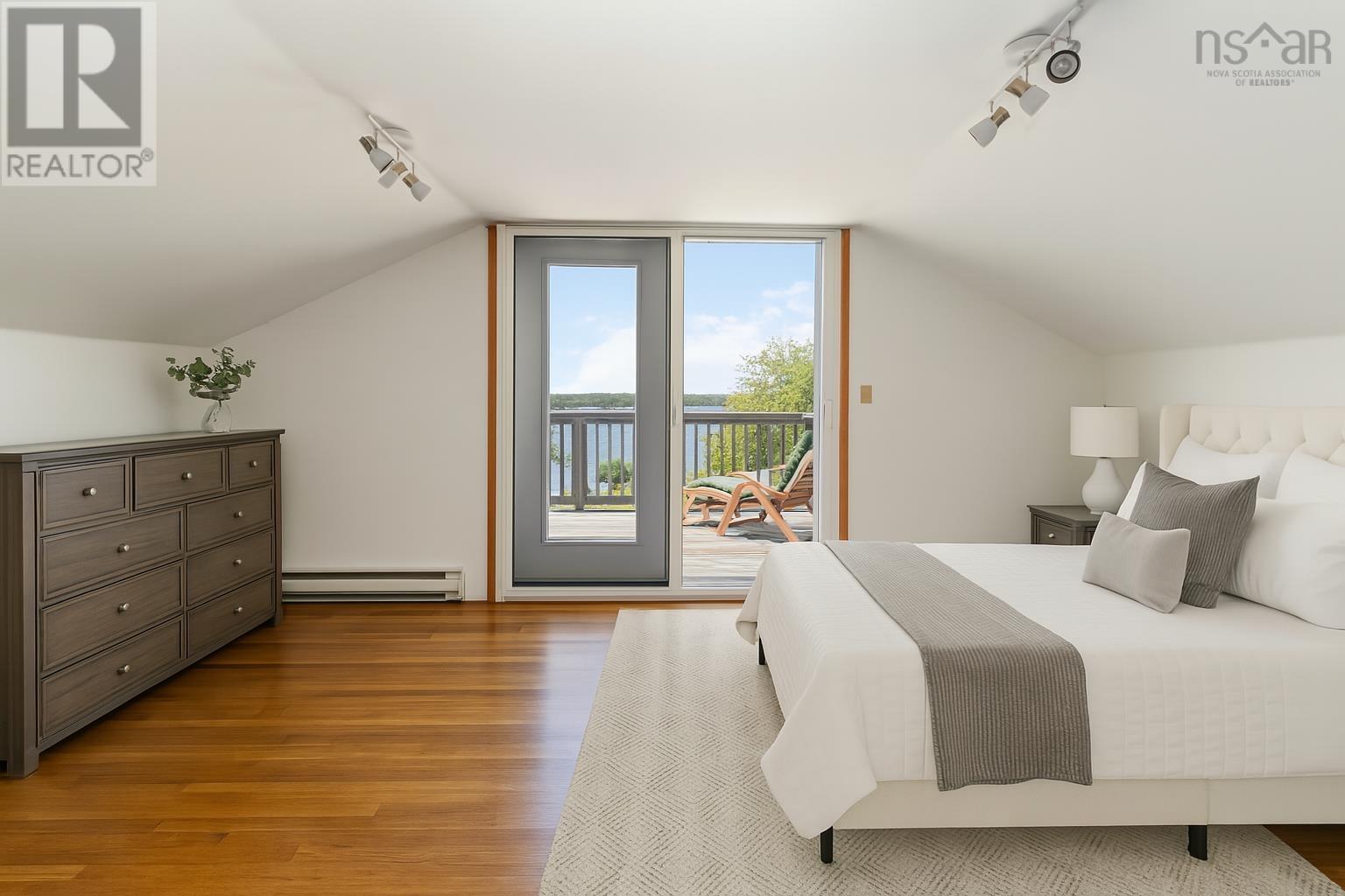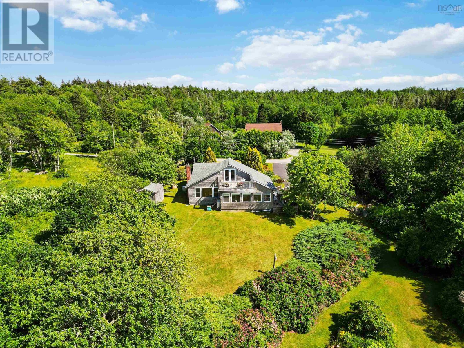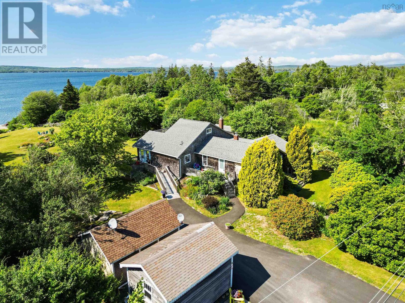 Nestled on a quiet, safe street, is this beautifully landscaped 1.3-acre waterfront property offering privacy, tranquility, and breathtaking ocean views. It is located in the charming coastal village of Port Medway. The grounds are truly exceptional, adorned with mature trees, vibrant shrubs, and perennial flower beds that add colour and charm throughout the seasons. The home is perched at the top of a gently sloping lot, providing elevated views of the gardens, the wharf & the Atlantic Ocean beyond. A true rarity, the property features its own well-maintained wharf and adjacent slipway, providing direct access to the water. At low tide, there is approximately 14 feet of water at the mooring ideal for larger recreational boats. A 16-foot ramp and 10x20-foot float are no longer there but the existing underwater weights remain in place, ready for a future installation. The main floor features a modern kitchen with a large family dining area complete with a propane fireplace, a spacious living room with an office nook, along with two inviting bedrooms, a renovated bathroom and a large laundry room that could be upgraded to a second bathroom. Upstairs, a loft bedroom opens to a private balcony that offers sweeping views of the gardens, the wharf, and Port Medway Harbour. The insulated crawl space and heat pump add energy efficiency and comfort. If the power goes out - no problem. The home has a propane powered 17kw Cummins generator that was installed in 2022. Previously there was a wood stove in the living room which could be replaced if desired. Furniture can be negotiated as part of the sale. Four outbuildings on the property provide ample room for storage, hobbies, &gardening. Two of these sheds are wired, making them perfect for workshops or studio use. This peaceful retreat is just a short stroll to the village park, local store and gift shop. (id:4069)