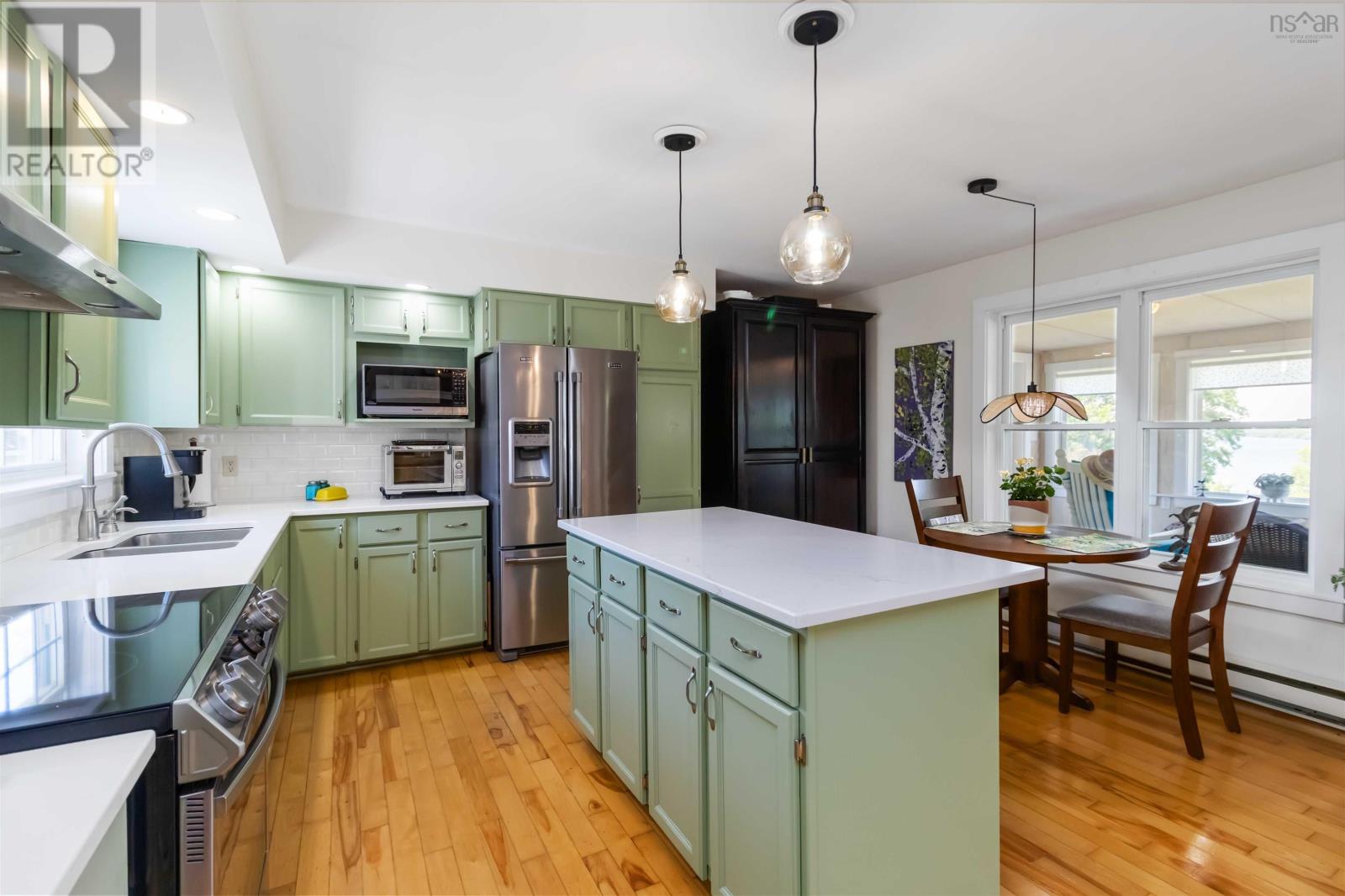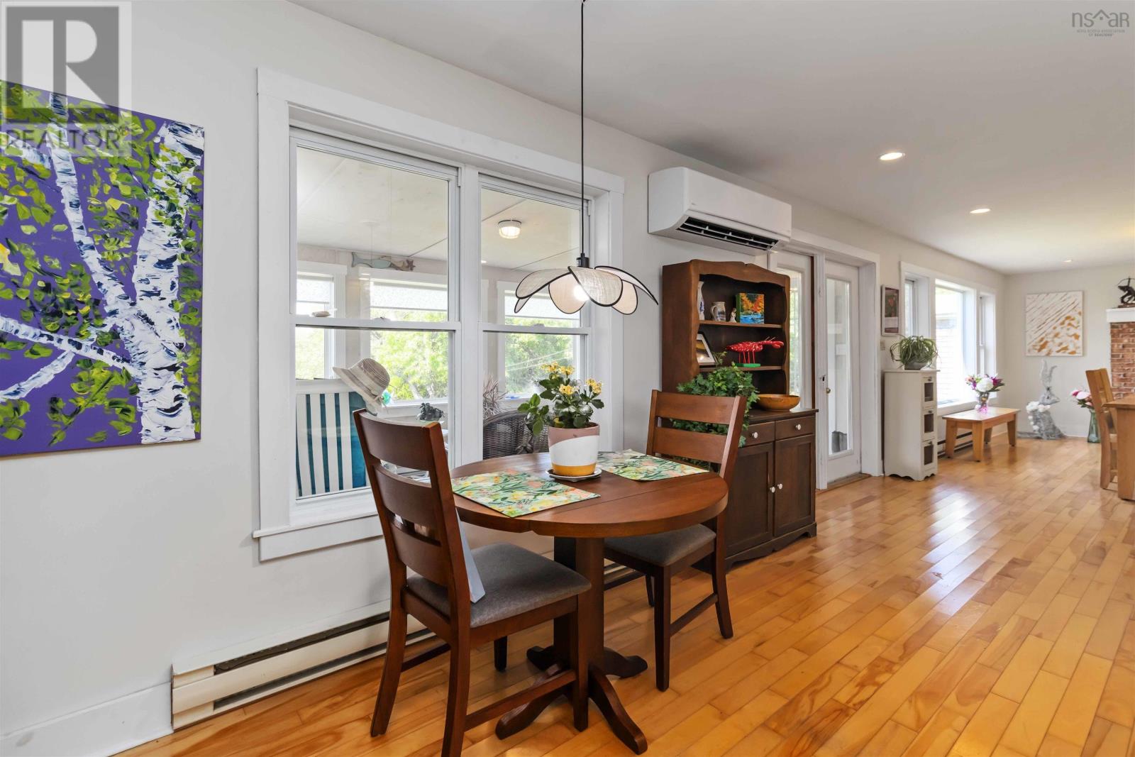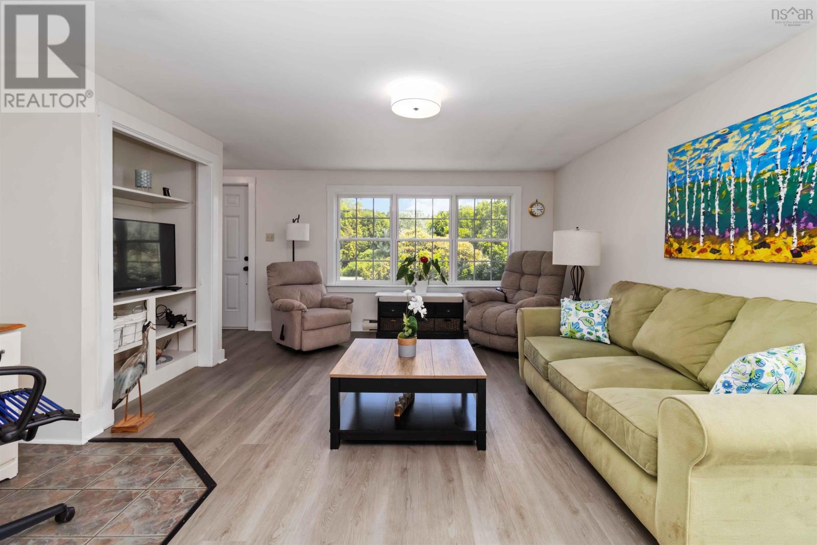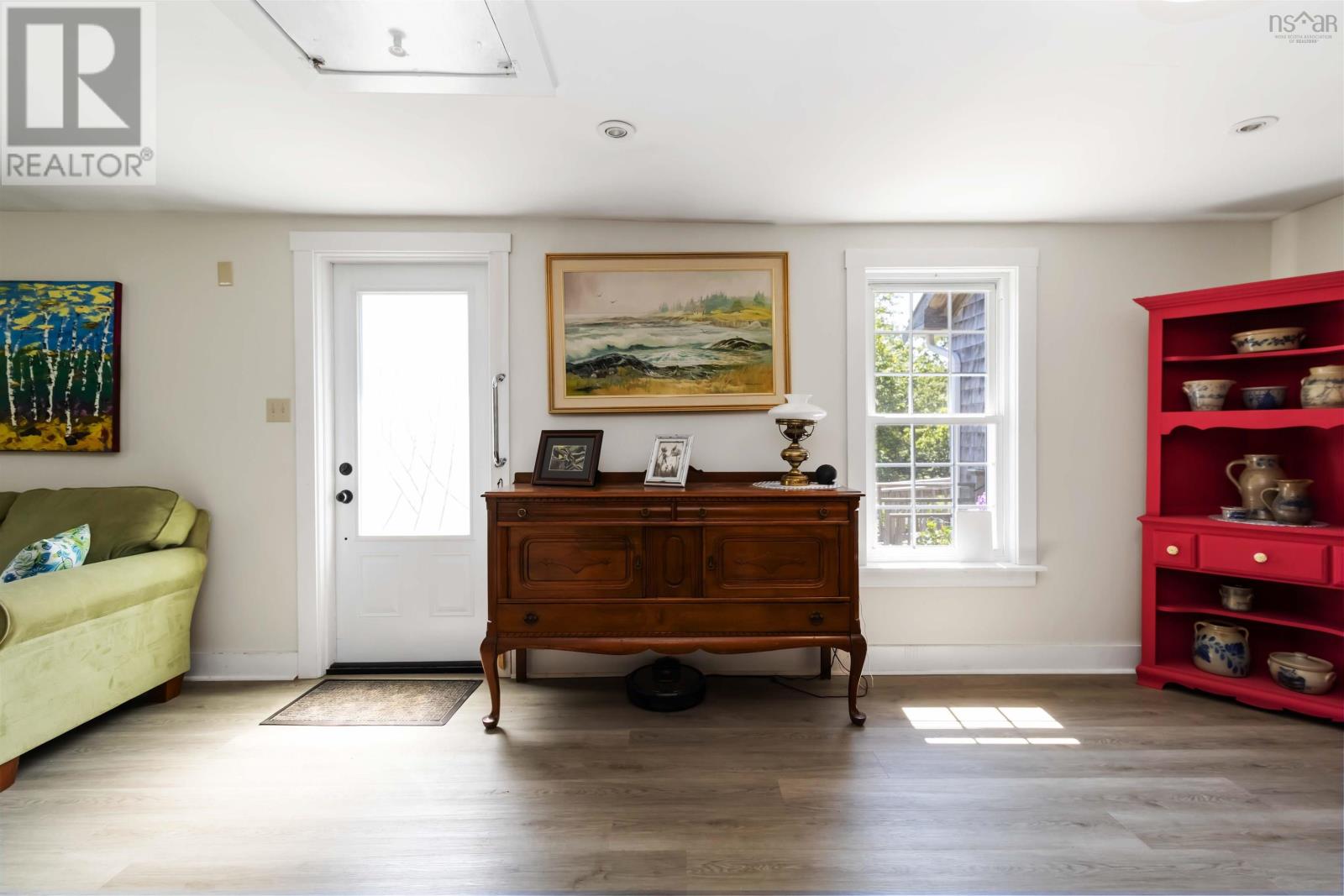 Nestled on a quiet, safe street, is this beautifully landscaped 1.3-acre waterfront property offering privacy, tranquility, and breathtaking ocean views. It is located in the charming coastal village of Port Medway. The grounds are truly exceptional, adorned with mature trees, vibrant shrubs, and perennial flower beds that add colour and charm throughout the seasons. The home is perched at the top of a gently sloping lot, providing elevated views of the gardens, the wharf & the Atlantic Ocean beyond. A true rarity, the property features its own well-maintained wharf and adjacent slipway, providing direct access to the water. At low tide, there is approximately 14 feet of water at the mooring ideal for larger recreational boats. A 16-foot ramp and 10x20-foot float are no longer there but the existing underwater weights remain in place, ready for a future installation. The main floor features a modern kitchen with a large family dining area complete with a propane fireplace, a spacious living room with an office nook, along with two inviting bedrooms, a renovated bathroom and a large laundry room that could be upgraded to a second bathroom. Upstairs, a loft bedroom opens to a private balcony that offers sweeping views of the gardens, the wharf, and Port Medway Harbour. The insulated crawl space and heat pump add energy efficiency and comfort. If the power goes out - no problem. The home has a propane powered 17kw Cummins generator that was installed in 2022. Previously there was a wood stove in the living room which could be replaced if desired. Furniture can be negotiated as part of the sale. Four outbuildings on the property provide ample room for storage, hobbies, &gardening. Two of these sheds are wired, making them perfect for workshops or studio use. This peaceful retreat is just a short stroll to the village park, local store and gift shop. (id:4069)