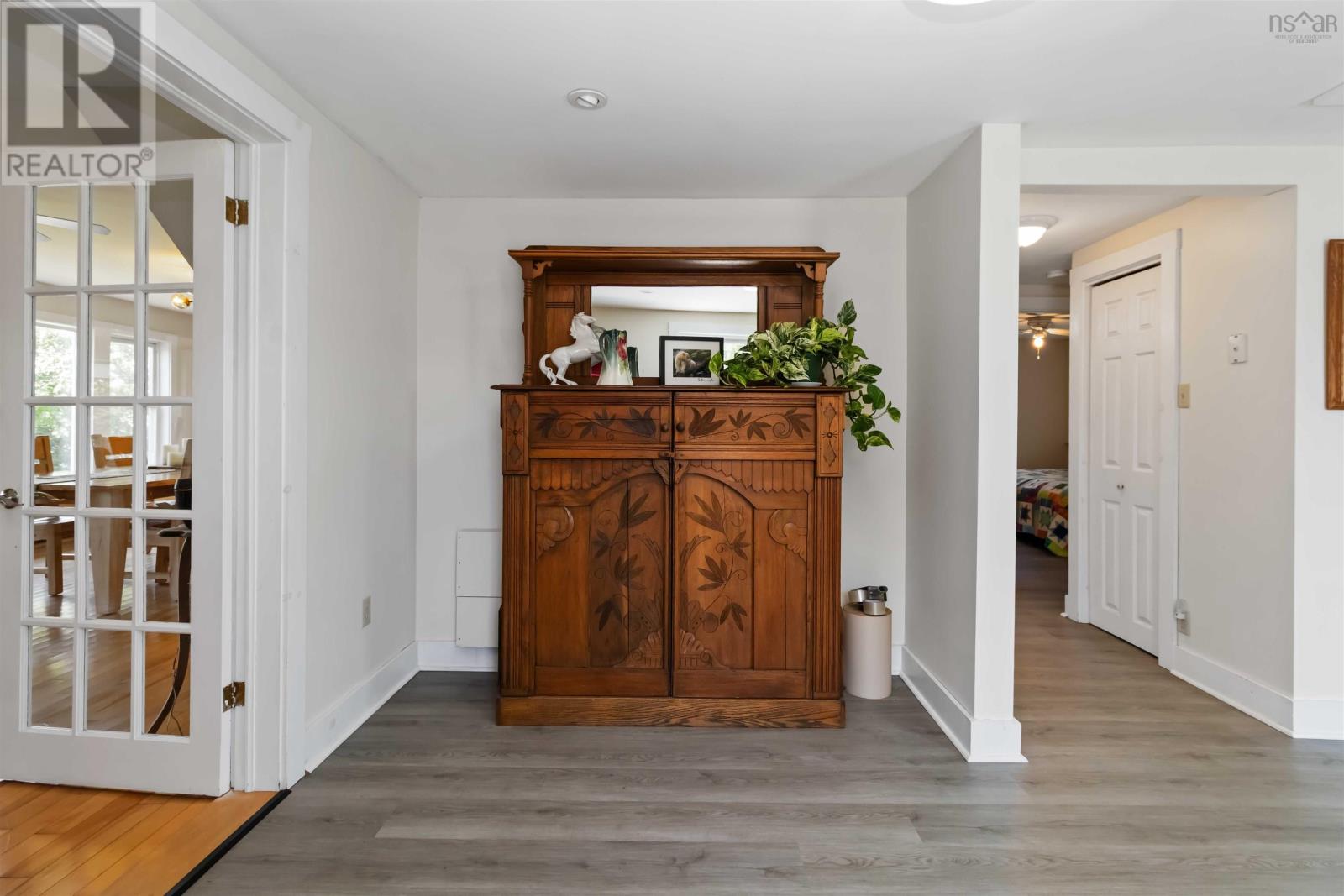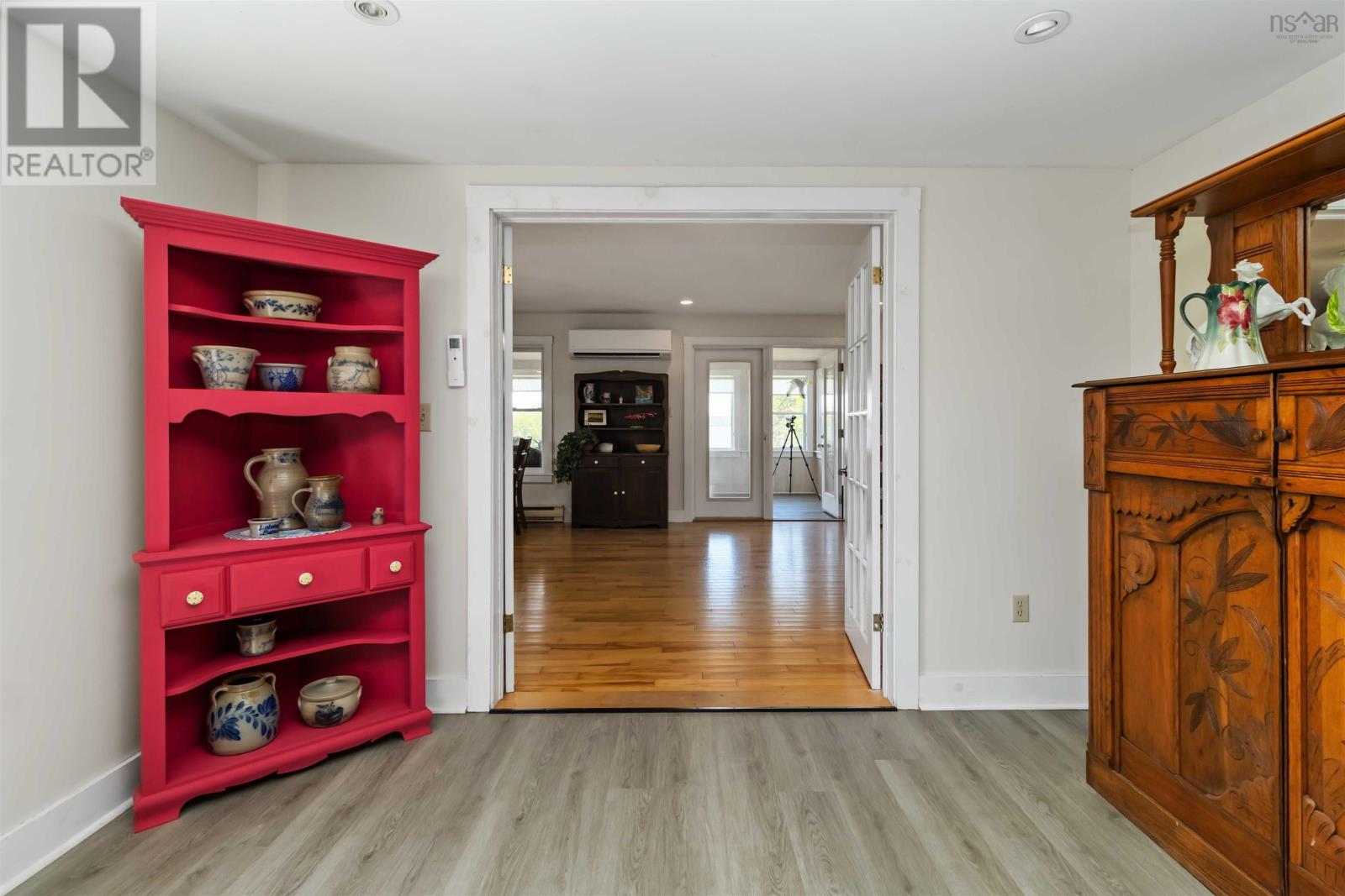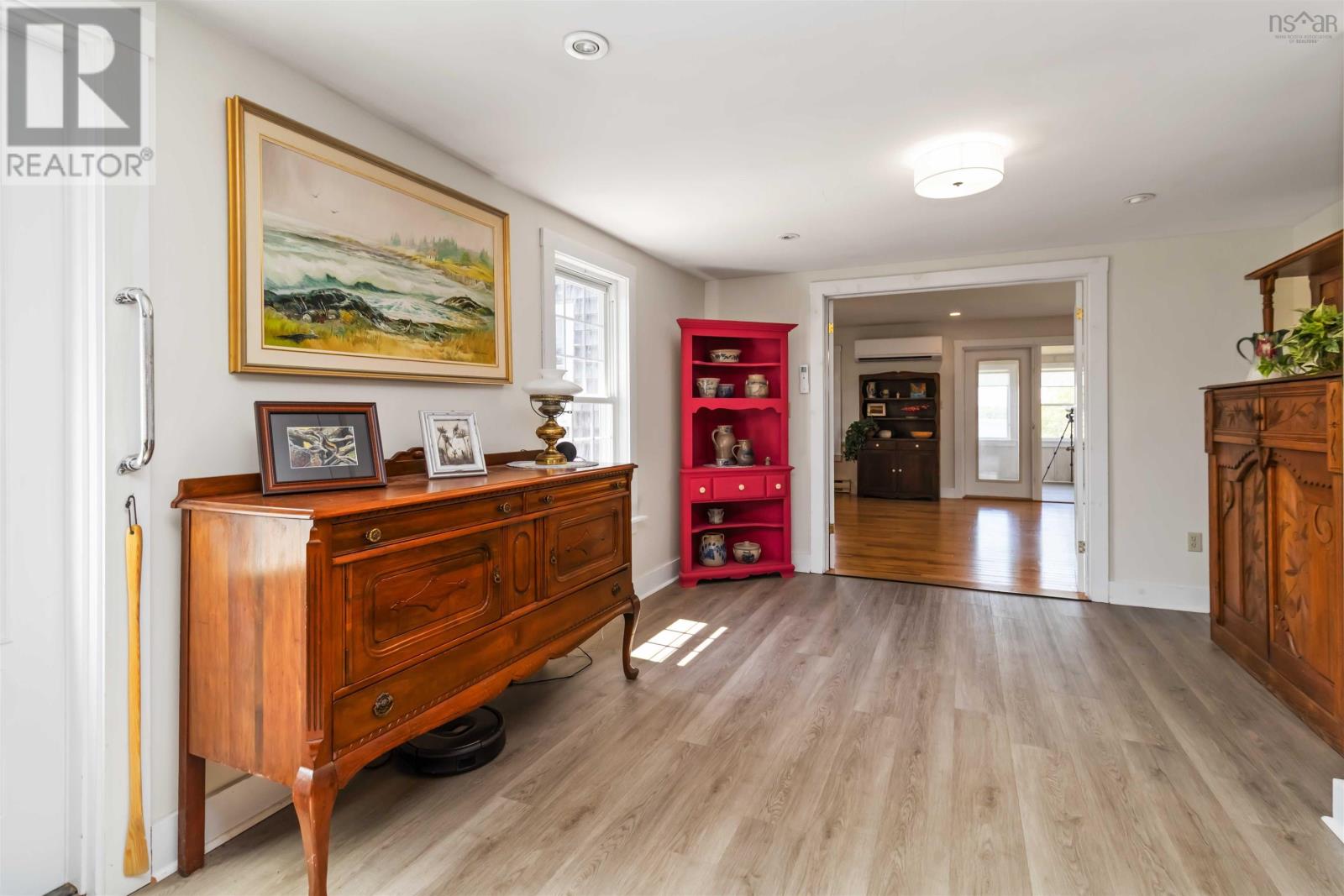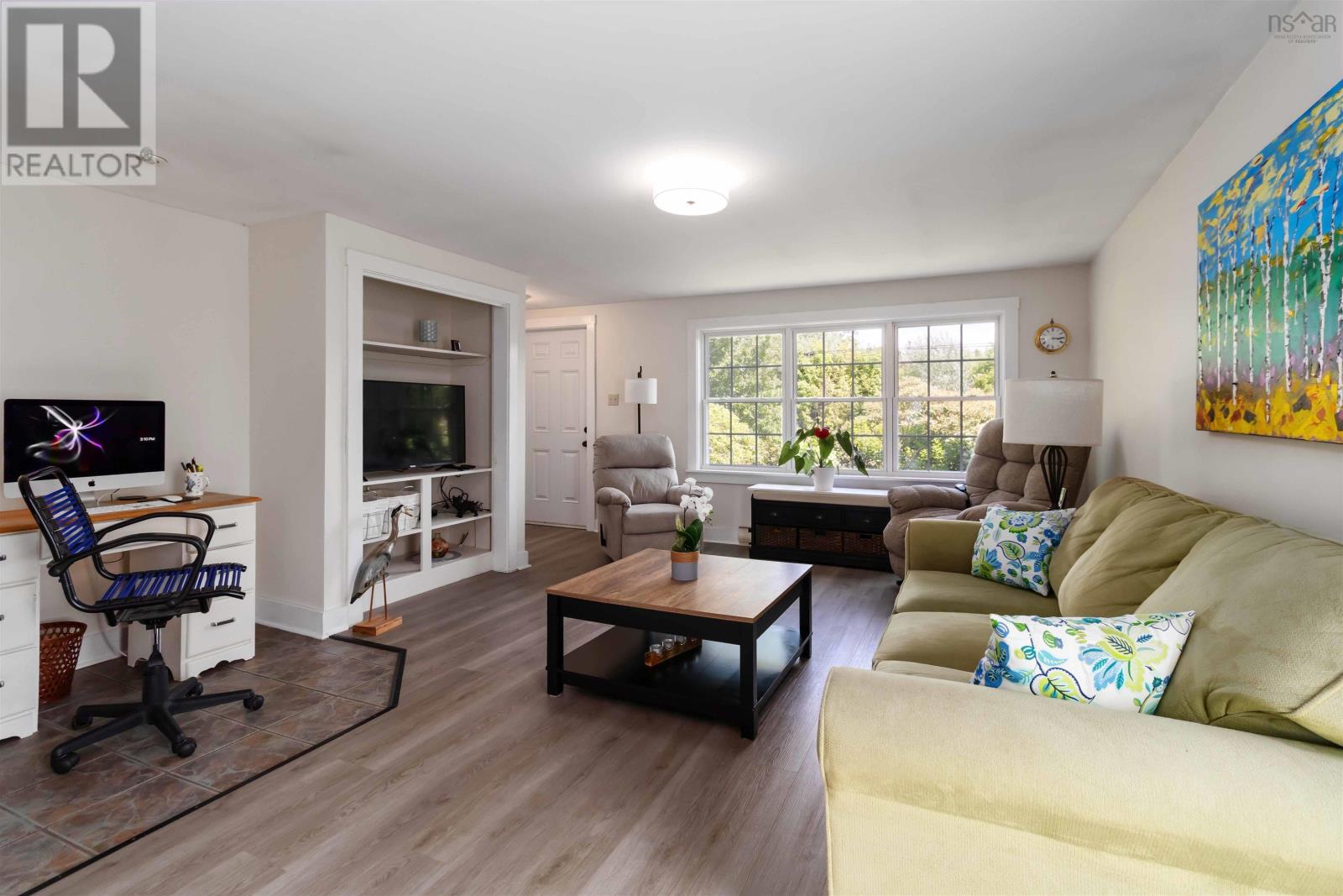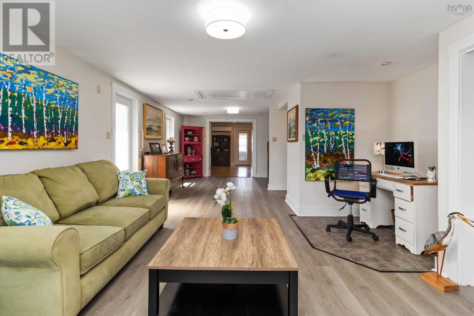 Nestled on a quiet, safe street, is this beautifully landscaped 1.3-acre waterfront property offering privacy, tranquility, and breathtaking ocean views. It is located in the charming coastal village of Port Medway. The grounds are truly exceptional, adorned with mature trees, vibrant shrubs, and perennial flower beds that add colour and charm throughout the seasons. The home is perched at the top of a gently sloping lot, providing elevated views of the gardens, the wharf & the Atlantic Ocean beyond. A true rarity, the property features its own well-maintained wharf and adjacent slipway, providing direct access to the water. At low tide, there is approximately 14 feet of water at the mooring ideal for larger recreational boats. A 16-foot ramp and 10x20-foot float are no longer there but the existing underwater weights remain in place, ready for a future installation. The main floor features a modern kitchen with a large family dining area complete with a propane fireplace, a spacious living room with an office nook, along with two inviting bedrooms, a renovated bathroom and a large laundry room that could be upgraded to a second bathroom. Upstairs, a loft bedroom opens to a private balcony that offers sweeping views of the gardens, the wharf, and Port Medway Harbour. The insulated crawl space and heat pump add energy efficiency and comfort. If the power goes out - no problem. The home has a propane powered 17kw Cummins generator that was installed in 2022. Previously there was a wood stove in the living room which could be replaced if desired. Furniture can be negotiated as part of the sale. Four outbuildings on the property provide ample room for storage, hobbies, &gardening. Two of these sheds are wired, making them perfect for workshops or studio use. This peaceful retreat is just a short stroll to the village park, local store and gift shop. (id:4069)