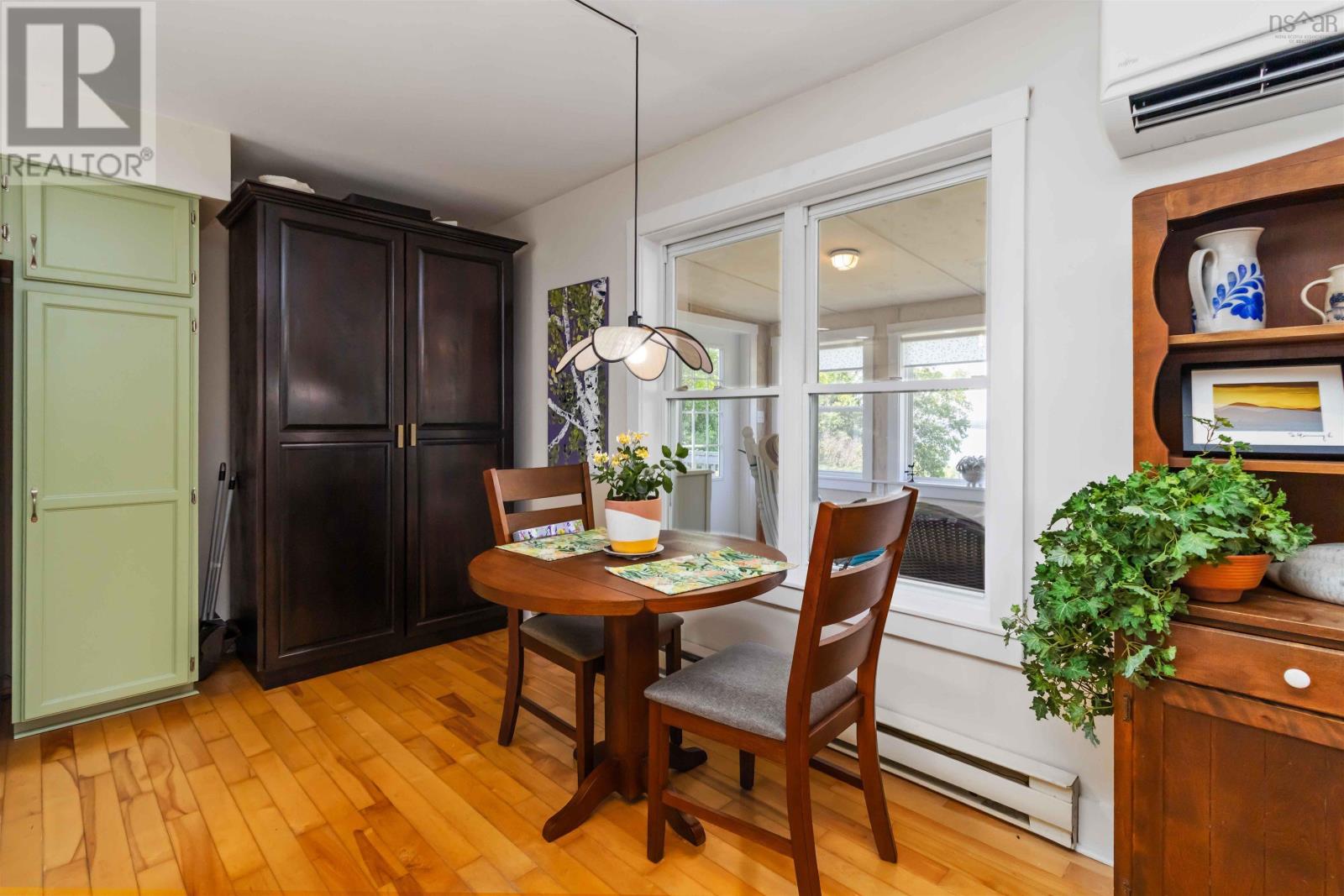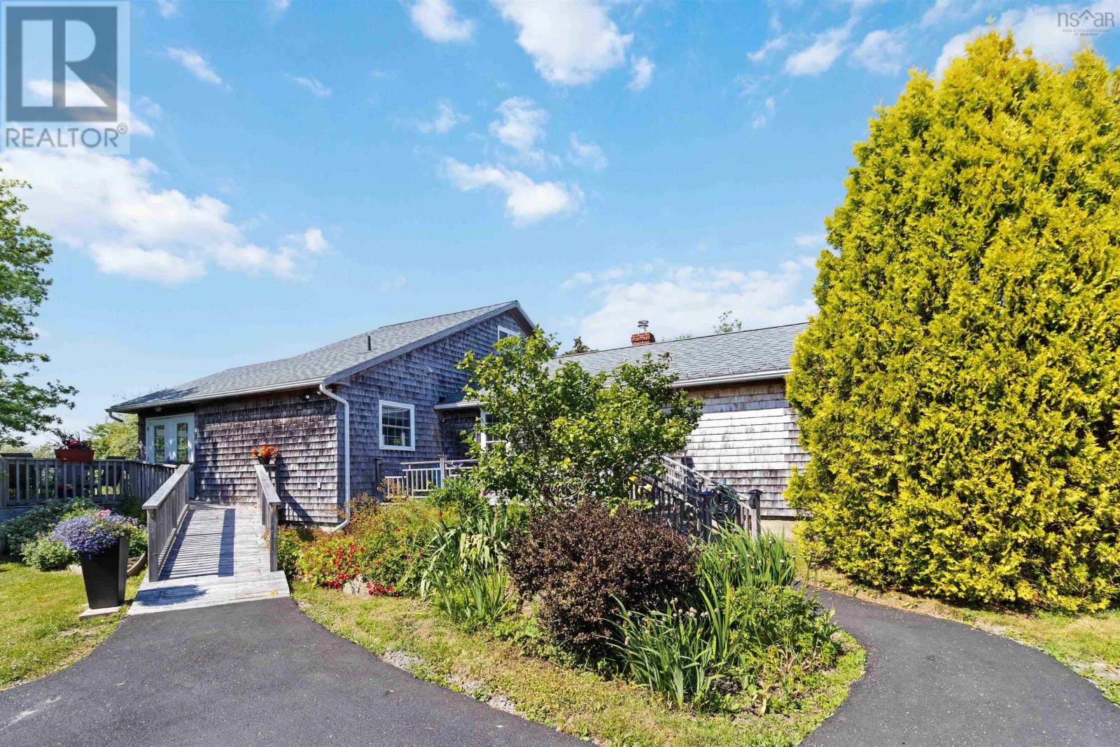 Nestled on a quiet, safe street, is this beautifully landscaped 1.3-acre waterfront property offering privacy, tranquility, and breathtaking ocean views. It is located in the charming coastal village of Port Medway. The grounds are truly exceptional, adorned with mature trees, vibrant shrubs, and perennial flower beds that add colour and charm throughout the seasons. The home is perched at the top of a gently sloping lot, providing elevated views of the gardens, the wharf & the Atlantic Ocean beyond. A true rarity, the property features its own well-maintained wharf and adjacent slipway, providing direct access to the water. At low tide, there is approximately 14 feet of water at the mooring ideal for larger recreational boats. A 16-foot ramp and 10x20-foot float are no longer there but the existing underwater weights remain in place, ready for a future installation. The home is bright, spacious, and thoughtfully maintained. The main floor features a modern kitchen with a large family dining area complete with a propane fireplace, a spacious living room with an office nook, along with two inviting bedrooms, a renovated bathroom and a large laundry room that could be upgraded to a second bathroom. Upstairs, a loft bedroom opens to a private balcony that offers sweeping views of the gardens, the wharf, and Port Medway Harbour. The insulated crawl space and heat pump add energy efficiency and comfort. If the power goes out - no problem. The home has a propane powered 17kw Cummins generator that was installed in 2022. Four outbuildings on the property provide ample room for storage, hobbies, &gardening. Two of these sheds are wired, making them perfect for workshops or studio use. This peaceful retreat is just a short stroll to the village park, local store and gift shop. Whether youre seeking a year-round residence or a seasonal coastal getaway, this Port Medway gem delivers the perfect blend of maritime charm, modern comfort, & practical functionality. (id:4069)