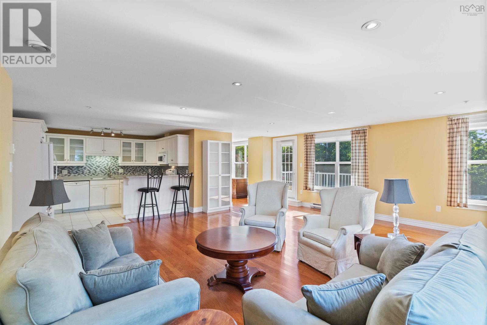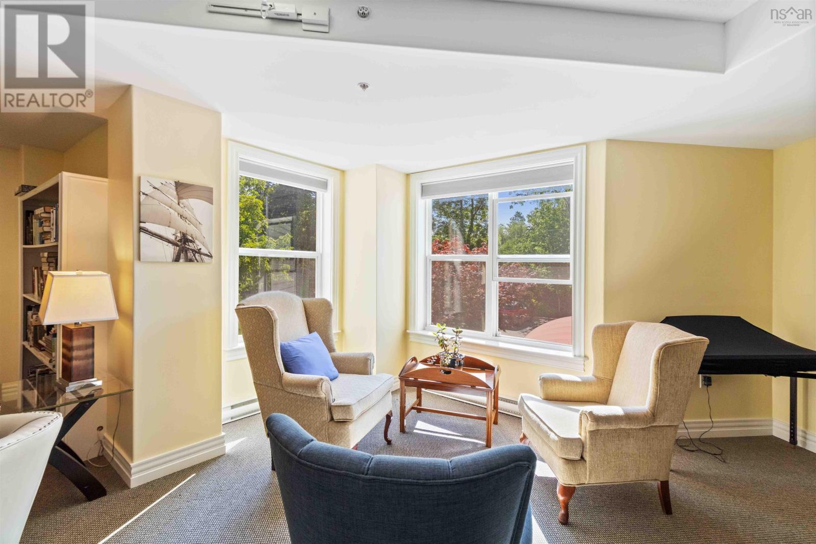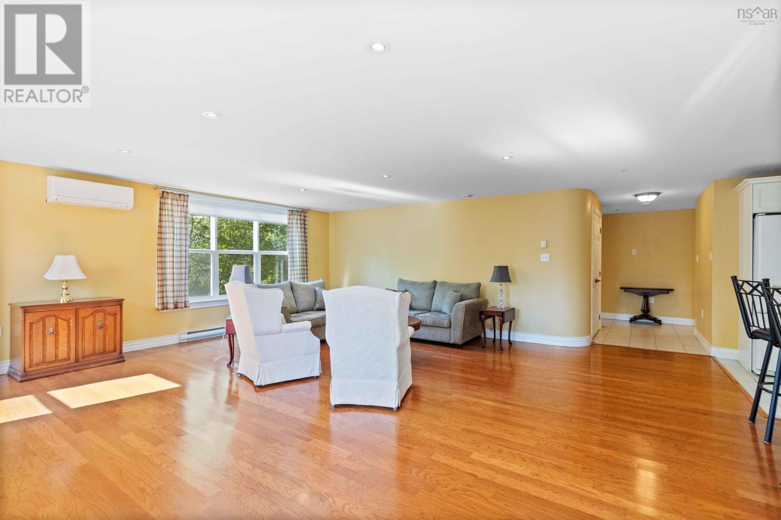 Welcome to Unit 101 at The Quinlana warm and inviting 2-bedroom condo with a den, perfectly tucked into the heart of charming Mahone Bay. Whether you are downsizing, retiring, or just looking for a more relaxed lifestyle, this beautifully finished unit checks all the boxes. Step inside to discover an open-concept living space with gleaming hardwood floors, perfect for entertaining or just enjoying a cozy night in. The kitchen is custom-designed with lots of cabinet space and flows nicely into the dining and living areas. Just off the living room, your private balcony overlooks landscaped grounds and a peaceful streamideal for morning coffee or evening wind-downs. The spacious primary bedroom features a walk-in closet and a lovely ensuite bath with custom finishes. Theres a second full bathroom, a bright guest bedroom, and a den that works great as an office or reading nook. Youre conveniently located right next to the amenities roomgreat for hosting friends or joining in on social events. The Quinlan is a well-managed, secure building with underground parking, storage, a welcoming lobby, and a backup generator for peace of mind. Its surrounded by walking trails and is just a short stroll to Mahone Bays shops, cafés, galleries, and waterfront. Youll love being next to favourites like The Barn and Suttles and Seawinds. Mahone Bay itself is a gemvibrant, walkable, and full of small-town charm. With Halifax just an hour away, its the perfect blend of coastal relaxation and convenience. If youve been dreaming of easy, stylish living in a great community, this could be your perfect match! (id:4069)