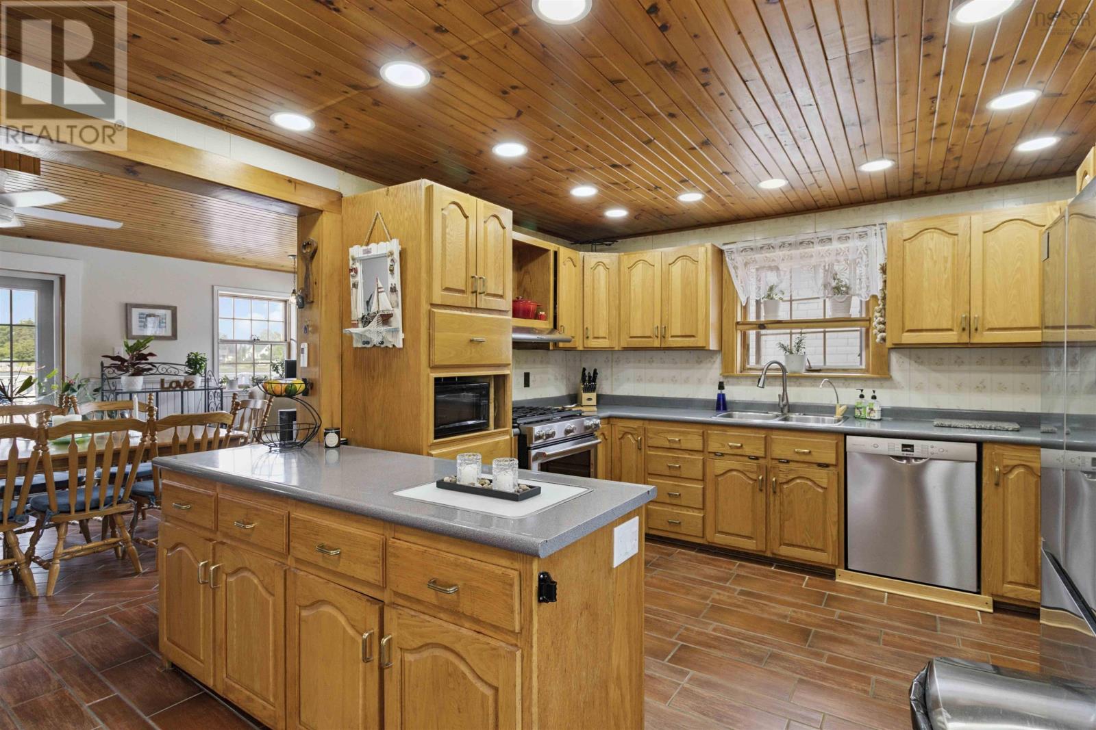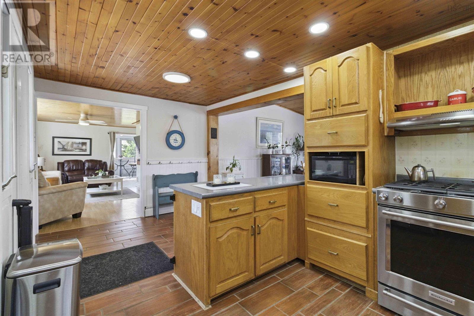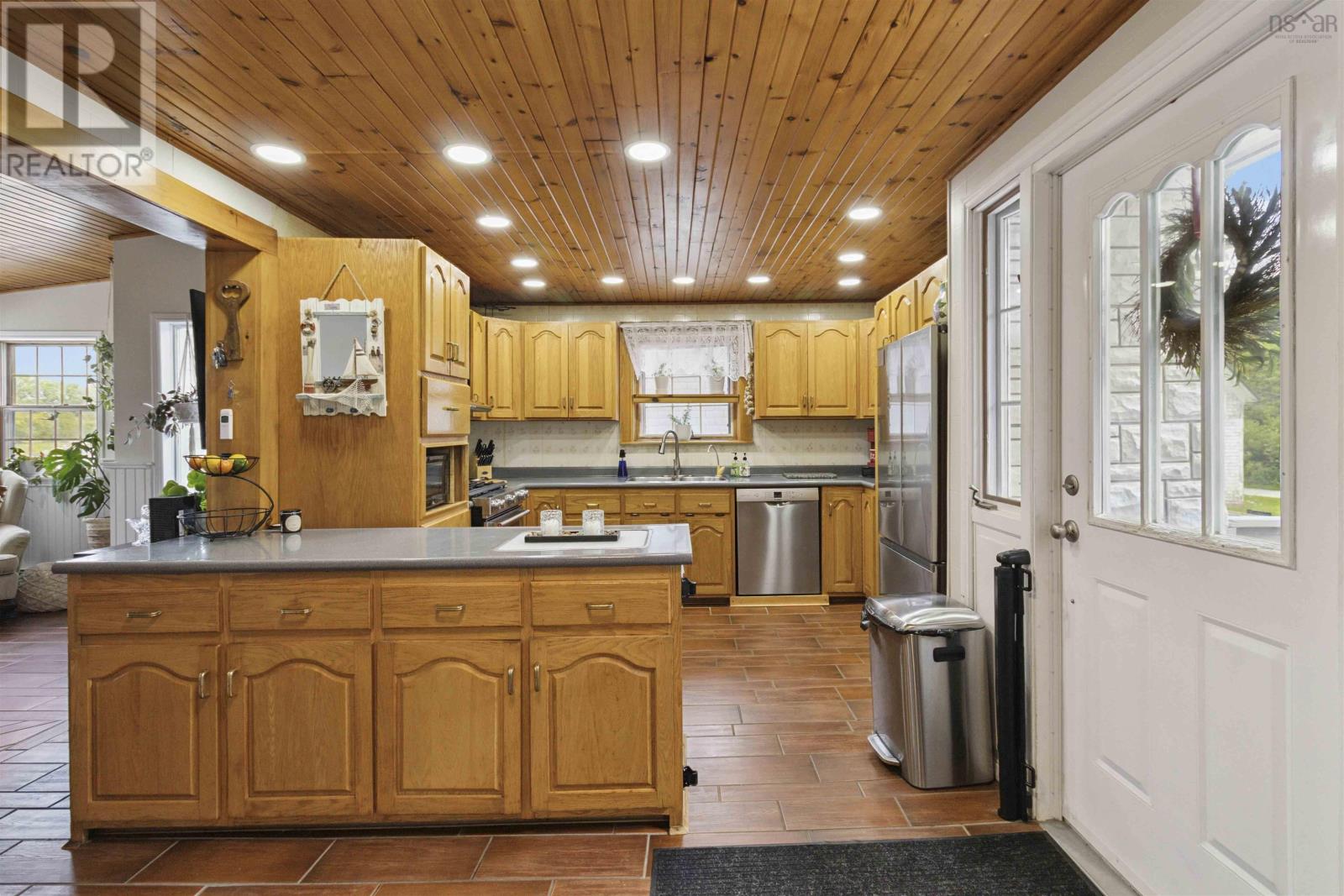 Welcome to your tranquil retreat on Roxbury Road in the charming coastal community of Port Medway, Nova Scotia. Nestled along the scenic South Shore, this waterfront property offers the perfect blend of natural beauty, modern comfort, and maritime charm. The home features three spacious bedrooms upstairs, plus a versatile main-floor space that could serve as a fourth bedroom, home office, or cozy den. The oak kitchen, complete with a peninsula and stainless-steel appliances, provides a warm and inviting space for family meals and entertaining. A fully renovated main bathroom and main-level laundry add everyday convenience, while the full unfinished walk-out basement offers endless possibilities for storage or future development. Step outside to enjoy the expansive wrap-around deck with breathtaking water views. The west-facing viewing nook is the perfect spot to unwind and take in spectacular sunsets over the bay. The property has a private wharf and dock with a ladder for easy swimming. The shoreline has been reinforced with large rocks for long-term stability. A hand-crafted garden lighthouse and raised vegetable and herb beds add character and charm to the beautifully landscaped grounds. Practical features include a two-storey detached garage with a workbench and upper-level storage, plus plenty of parking space. Located just minutes from Port Medways historic lighthouse park, sandy beaches, and scenic coastal routes, this home is only 20 minutes to Bridgewater and 90 minutes to Halifax and the international airport. Whether youre seeking a year-round residence or a peaceful getaway, this property offers a rare opportunity to experience the very best of Nova Scotias coastal lifestyle. (id:4069)